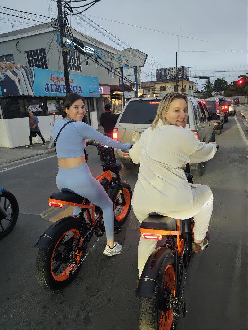 The 20"x4" fat tires provide a safe and comfortable ride on various terrains, including rocky roads, uphill paths, snowy ground, and mud, as well as on pavement and city roads.